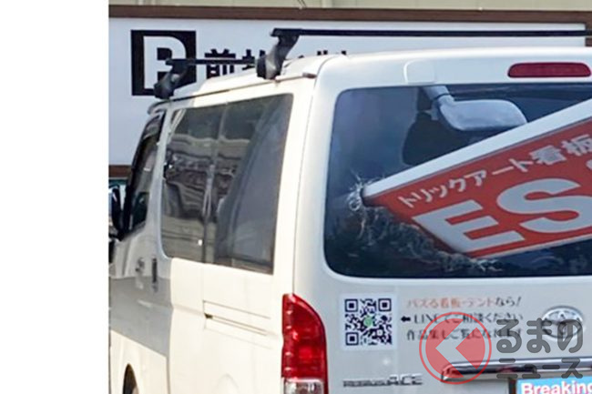 クルマの窓に看板が刺突!? 二度見してしまう衝撃の光景がSNSで話題 思わぬ仕掛けがあった?