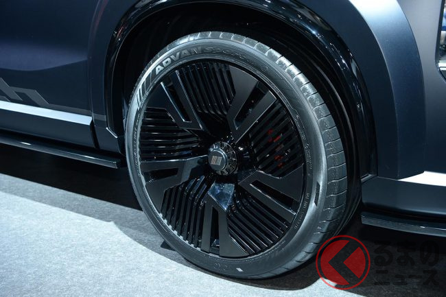走りの面においては、ワイドトレッドとして22インチの大径ホイール&タイヤを装着。さらに強力なモータートルクに見合った制動性能を発揮する大径ブレーキディスクと対向6ポットキャリパーを採用し、「走る」「曲がる」「止まる」のレベルを一段と高めました。