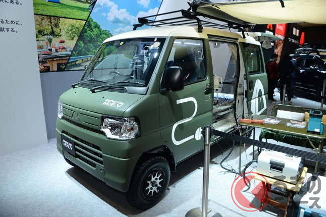 アウトドア映え必至な三菱軽が誕生! ゴツさ演出の「ミニキャブ・ミーブ」ソロキャンプ仕様を初公開