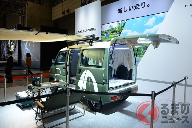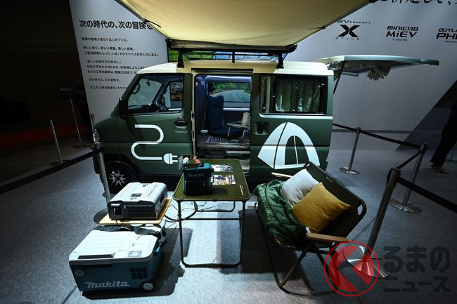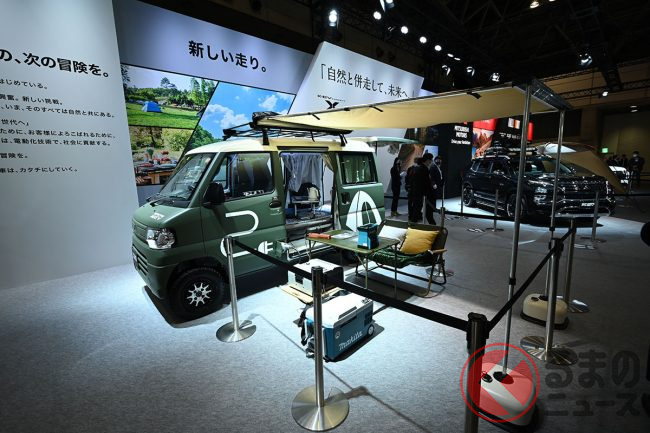 三菱が東京オートサロン2022で初公開した「ミニキャブ・ミーブ Bレジャースタイル」は、ソロキャンプやテレワークでの使用を想定したカスタムカーです。どんな装備が採用されたのでしょうか。