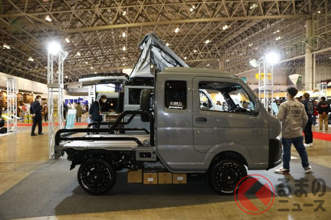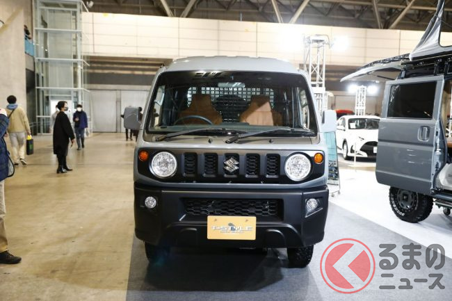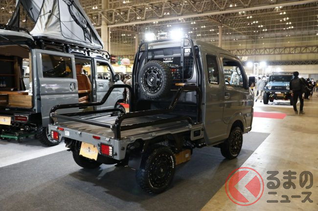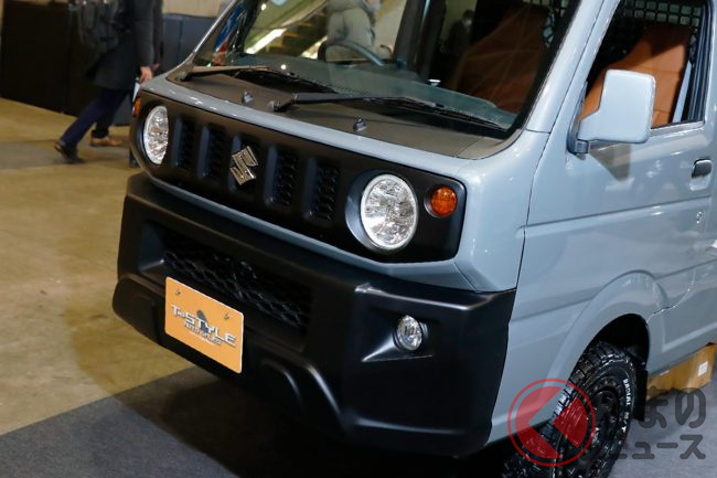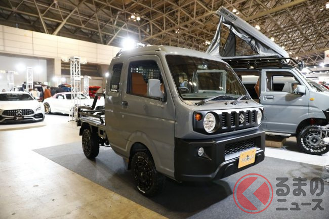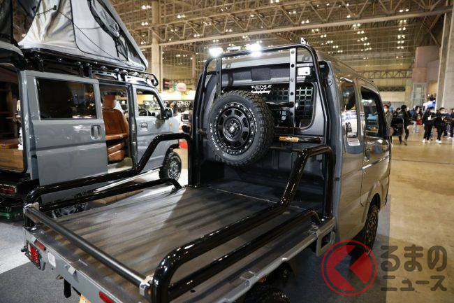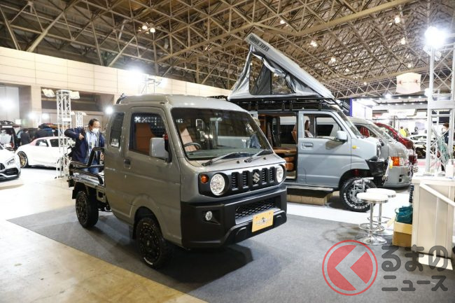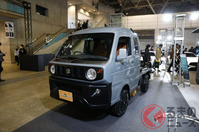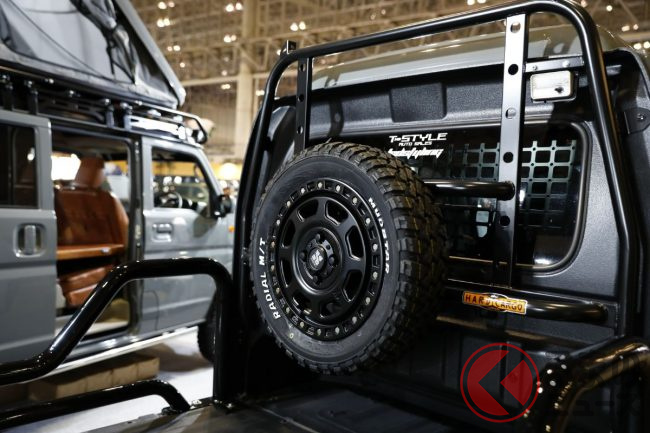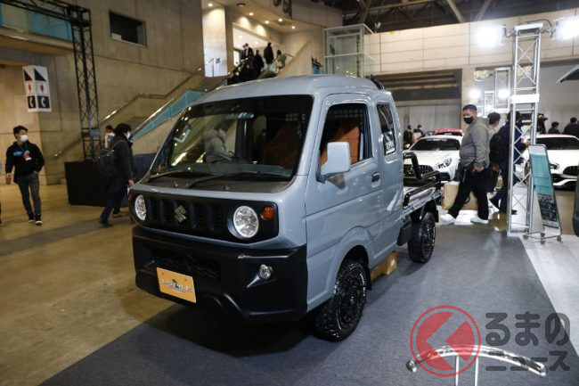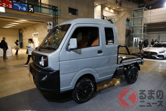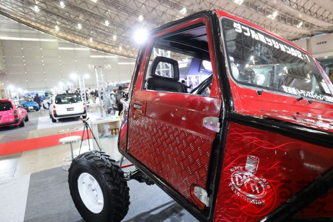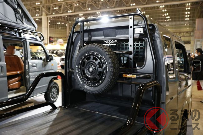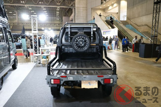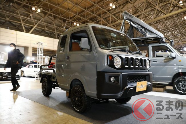 スズキ「ジムニー」を魔改造! 噂の5ドア化!? 後ろ半分切断 体は軽トラ オートサロンに現れた変わり種