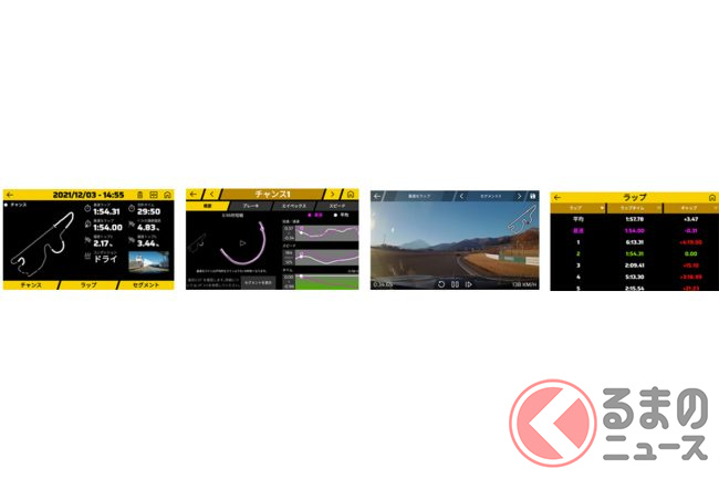 サーキットコースは手動で追加が可能で、走行中のドライビングに対するアドバイスはヘッドホンやBluetoothを経由したカーステレオの音声ナビゲートでおこないます。