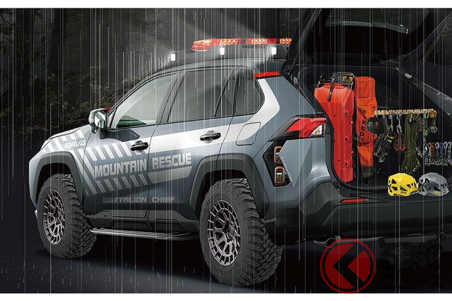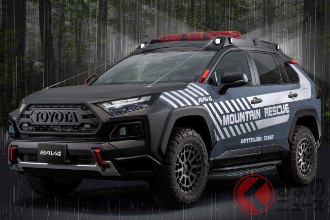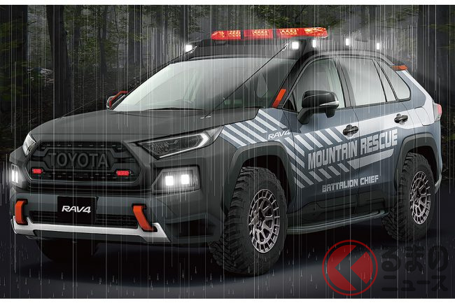 ゴツすぎ! トヨタ新型「RAV4救助車」の頼もしさが半端ない 黒TOYOTA強調した姿とは?