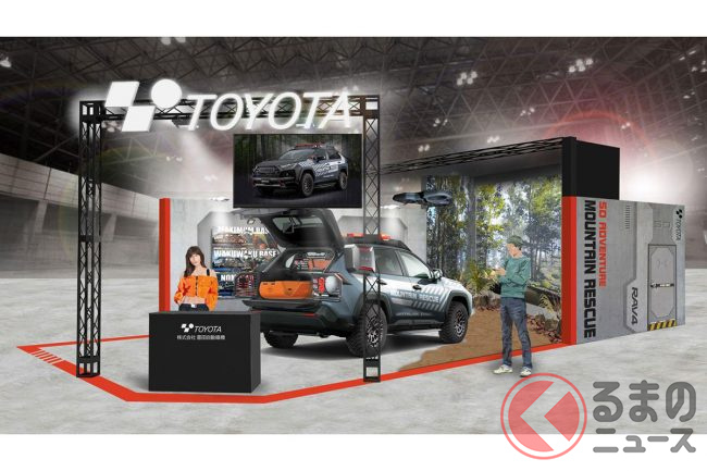 今回、豊田自動織機が出展した「RAV4“5Dアドベンチャー2022”」は山岳救助をテーマとし、有事の際に確実かつ安全に現場へ突入して、救助活動が出来るプロ発想のクルマを目指したモデルとして公開されました。