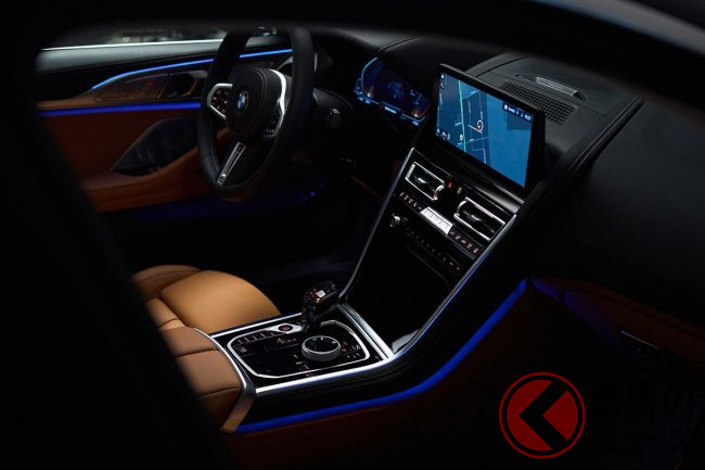 今回世界初公開された改良新型8シリーズは、内外装を一新。フロントはBMWの「アイコニック・グロー」と呼ばれるキドニーグリルを採用しています。キドニーグリルに内蔵された「ウォーターフォールライト」は、改良新型8シリーズのエレガントさを際立たせるといいます。このイルミネーションは車両のドアを開けると同時に点灯、ドライバーが手動でオン/オフを切り替えることが可能です。