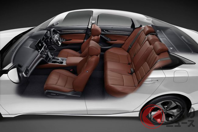 インドネシアに今回登場する新型アコードは、パワーサンルーフを設定。内装はブラックとベージュでまとめられ、スポーティとプレミアムな印象を与えています。