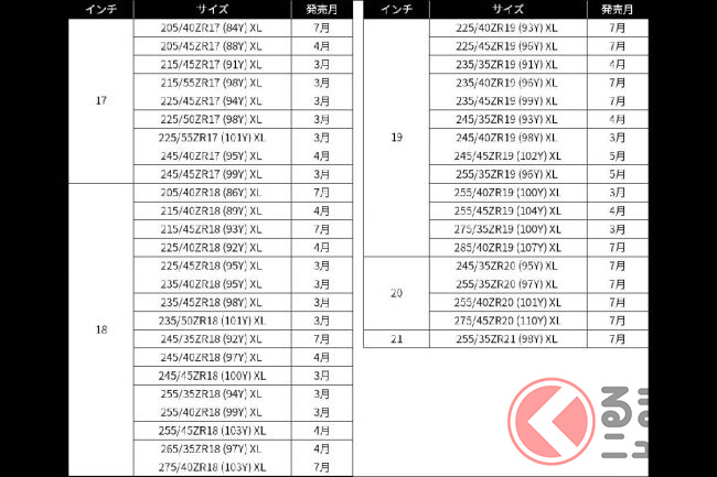 サイズは17インチから21インチまで、35シリーズから55シリーズまで全43サイズ、価格はオープンです。