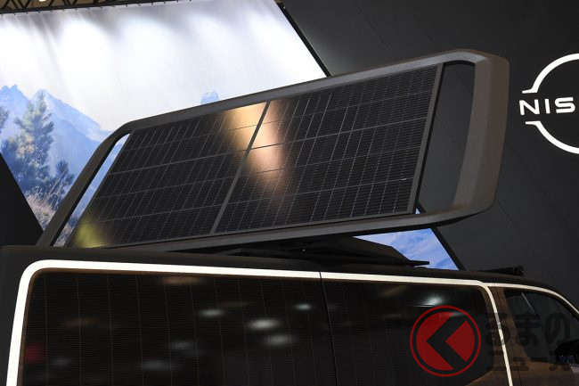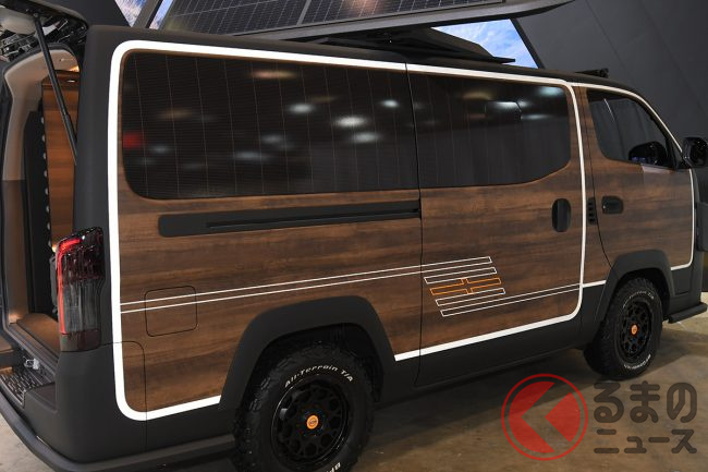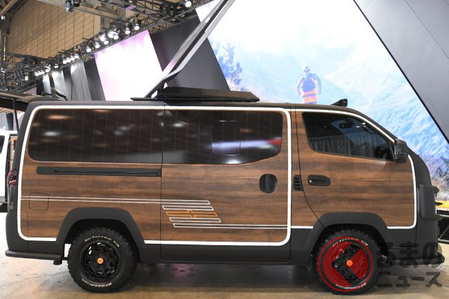 ヘッドライトガードが装備され、存在感あるフロントフェイスを表現。ルーフには大型の可動式太陽光パネルが搭載されました。