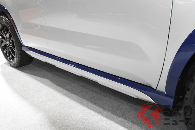 外観はオリジナル色のオールペイントが施されたほか、フロントグリルガーニッシュやフロントアンダーガーニッシュ、サイドアンダーガーニッシュ、リアアンダーガーニッシュなど各パーツにブラックパーツを採用。SUVらしい力強さをアピールしました。
