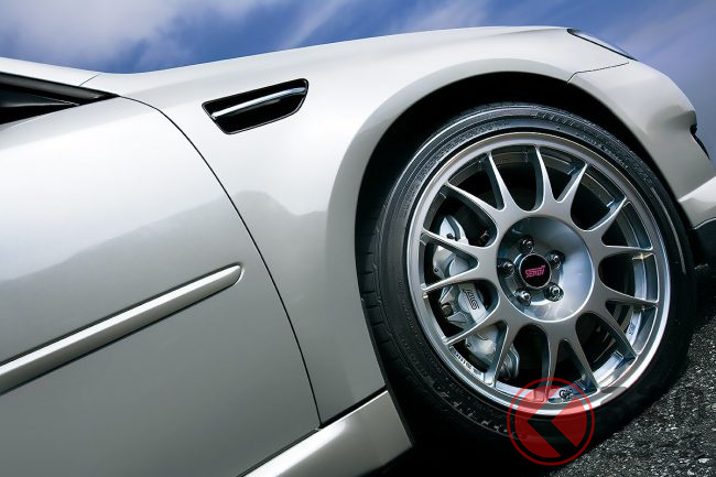 シャシまわりでは、ビルシュタイン製ダンパー、ピロボール式のリアサスペンションリンク、フレキシブルタワーバー、ブレンボ製フロント対向6ポットキャリパー/リア対向2ポットキャリパー、さらにクイックレシオのステアリングギアボックスを採用するなど、それまでに培ったSTIのノウハウを生かしバランスを重視したチューニングが施されていました。