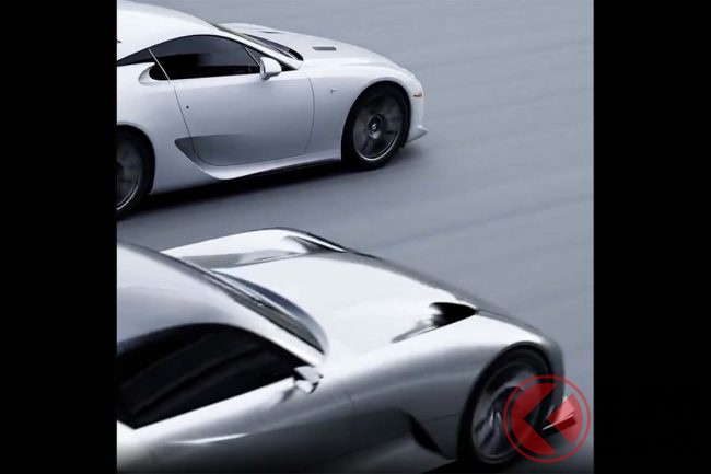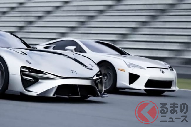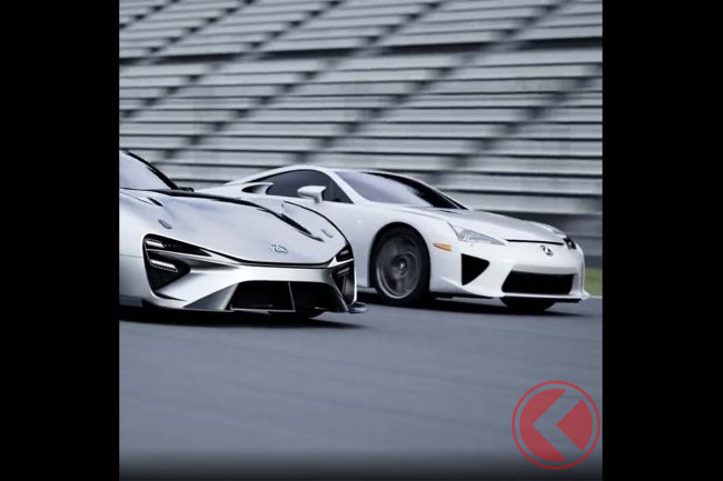 レクサスの次世代スポーツカーである新型「エレクトリファイドスポーツ」の映像がツイッターに投稿されました。そのなかで、わずか500台販売された「LFA」との共演を果たしています。
