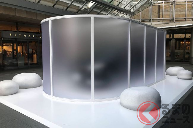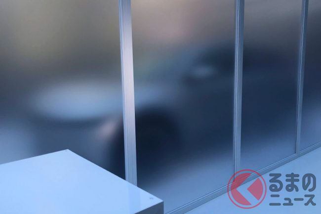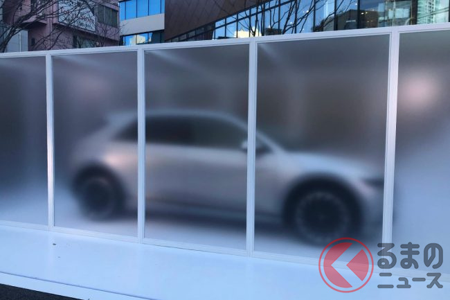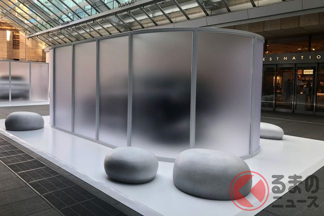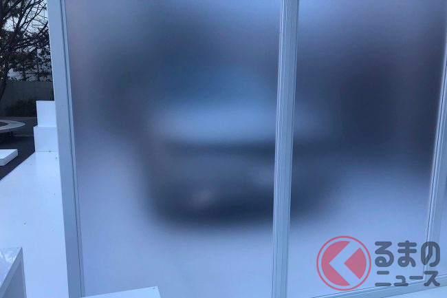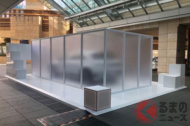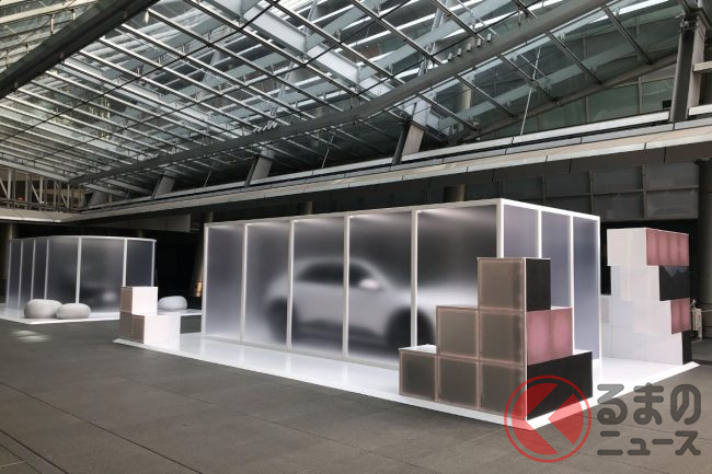 2022年2月6日時点では、磨りガラスで覆われた直方体のなかにクルマと思しきなにかが展示されていますが、どのような展示がおこなわれているのでしょうか。