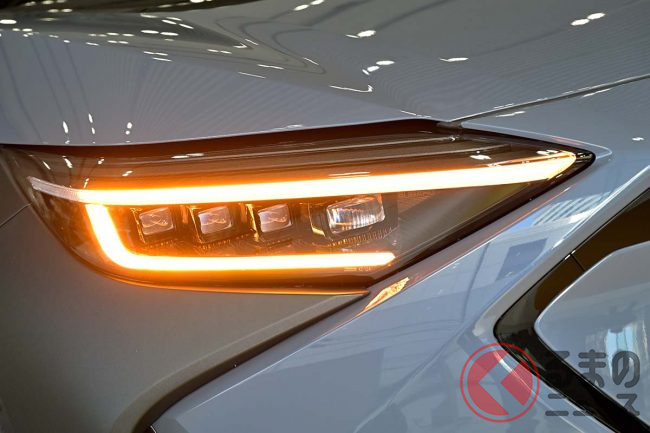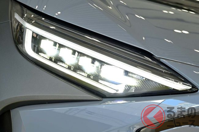 Cシェイプと呼ばれる、コの字を横長にした感じのヘッドライトがスバル車らしさを演出。ロービームに3連LEDを使用し、ハイビームにひとつのLEDを配置した4連LEDヘッドライトがシャープな印象を作っています。