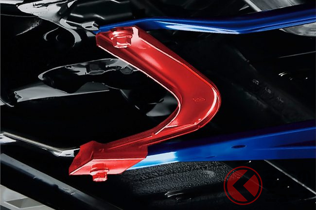 シャシまわりでは、フロントブレースとセンターブレースを追加して補強することで、ステアリング操作に対する応答性が向上。この高剛性ボディに合わせ、サスペンションのスプリングとKYB製ショックアブソーバーも専用セッティングとされ、デファレンシャルギヤにはLSDを標準装備。