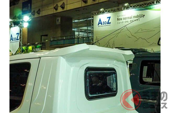AtoZが製作した「AT-Z」です。ちょっと見慣れないトラックですが、ベース車両は日産「NV200バネット」。