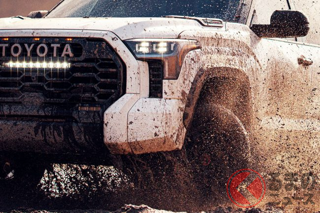 「新車汚しすぎ!? 」トヨタ新型「タンドラ」の新映像公開! 6m級巨体が泥しぶき上げる痛快CMを米で披露