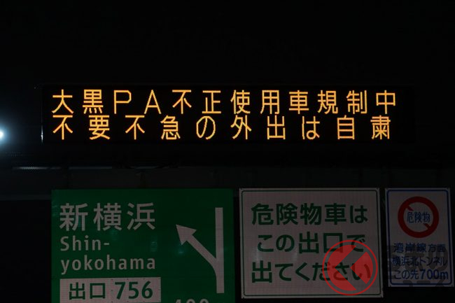 週末の夜に大黒PAが閉鎖されることは珍しくありませんが、今回の閉鎖はいつもと少し事情が異なっていたようです。