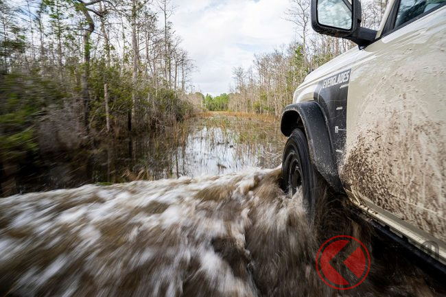 フォードによって設計された、路面環境や天候に応じ2枚のプレートを使って吸気口の向きを変更することが可能なシュノーケルを採用。またフロントアクセルとリアアクスル、トランスファーケース、トランスミッションには水の侵入を改善するためのベントも設けられています。これらの改良により、36.4インチ(およそ924mm)の水深の渡河能力を誇ります。
