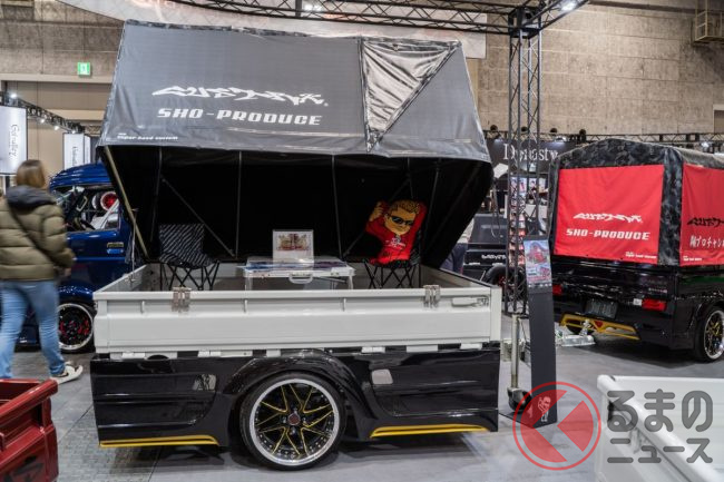 なかでももっとも目立って、多くの来場者があふれていたのが翔プロこと翔-プロデュース(本社:兵庫県姫路市)が展開するカスタム軽トラです。