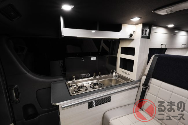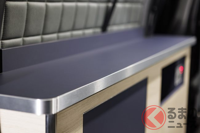 美しさと機能性を併せ持つキャビネットに変更され、シートやベッドマットといった素材はキャンピングカーとしてだけではなく、クルマとしても使いやすい強度と高級感を付与。