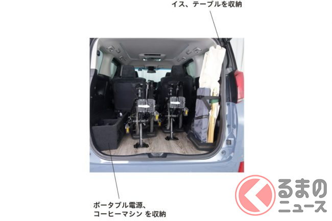 アルファード ポタリング仕様車は、3列目シートを撤去し空いたスペースに折りたたみ電動自転車を2台積載することで、レンタサイクルを探さなくても、目的地に着いたらユーザーはすぐポタリングへ出かけることが可能です。