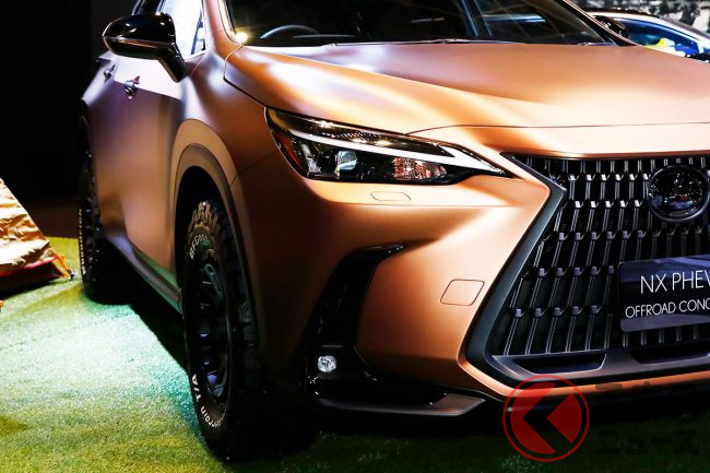 レクサス 最新ゴツSUV「NX オフロード仕様」が「ニコタマ」降臨! ブロンズ色ギラリのPHEVに熱視線!?