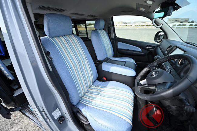 内装には耐久性・耐水性に優れたファブリック素材を取り入れ、新型キャラバンのインテリアコンセプトである黒を基調に落ち着いた雰囲気で統一しています。
