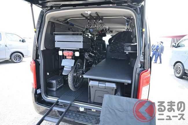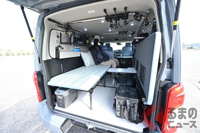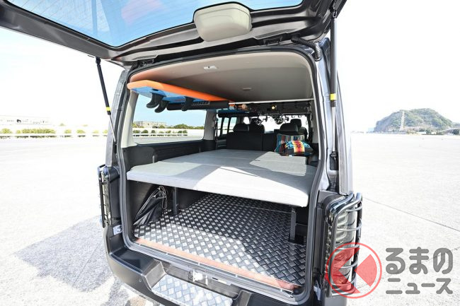 キャンプや、スキー/スノーボード、釣り、サーフィンといったアウトドアレジャーのほか、クルマのなかで寝泊まりする車中泊など、アクティブな趣味を楽しむ人にとってバンの使い勝手の良さがウケているといいます。