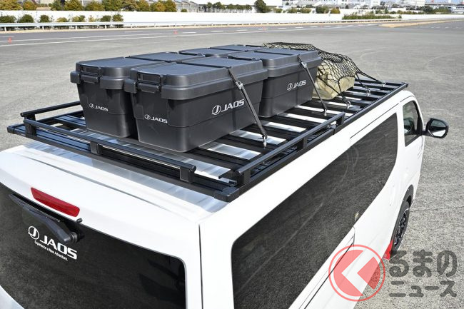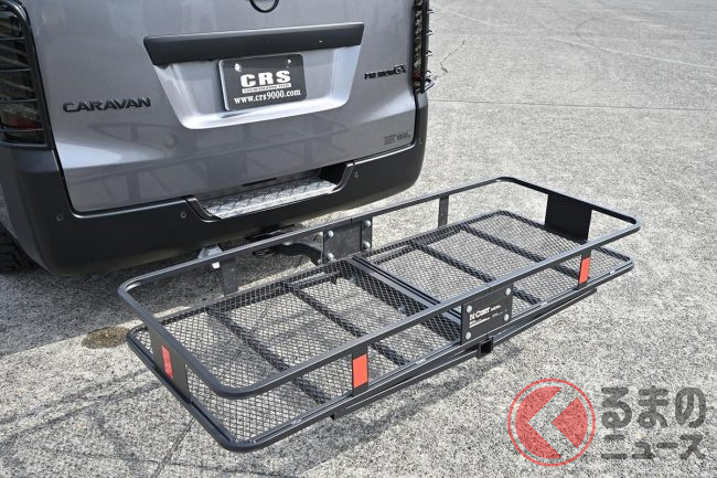 さらに、キャラバンに標準装備される「ラゲッジユーティリティナット」を利用してボルトオンで取り付けできる「ESサイドマルチパイプラック」のロングバージョン(180cm)を取り付けることで、さまざまなものを載せることができます。