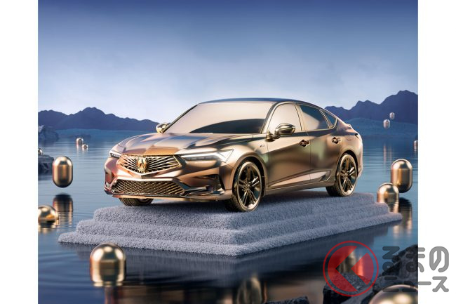 公開された画像では、ボディからタイヤに至るまで金色で仕上げられた新型インテグラが確認できます。