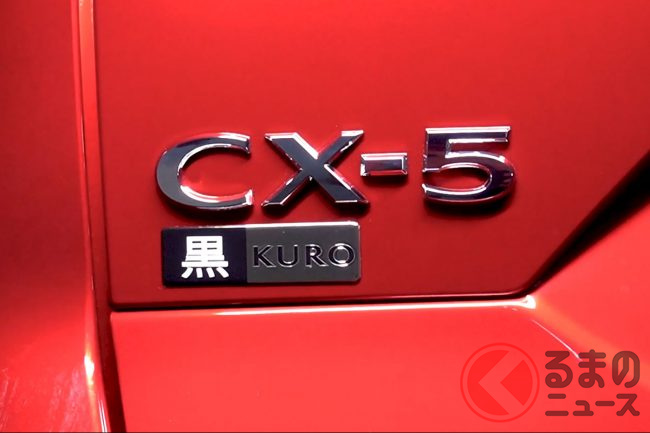 一方映像のなかでは、ボディの一部と思われるCX-5のエンブレムのそばに「黒 KURO」という漢字表記のエンブレムも配されました。