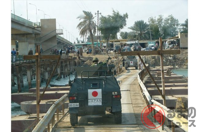 このクルマは2002(平成14)年から導入が始まりましたが、翌2003(平成15)年からの自衛隊イラク派遣でも使われ、特徴的な角ばった車体に日の丸を付けた姿がニュース映像でも紹介されて有名になりました。プラモデルやラジコンカーにもなっています。