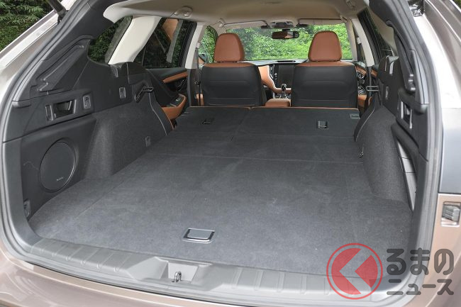 新型アウトバックのラゲッジルーム床上の荷室容量は522Lで、「フォレスター」(同520L)や「レヴォーグ」(同492L)よりも広く確保。