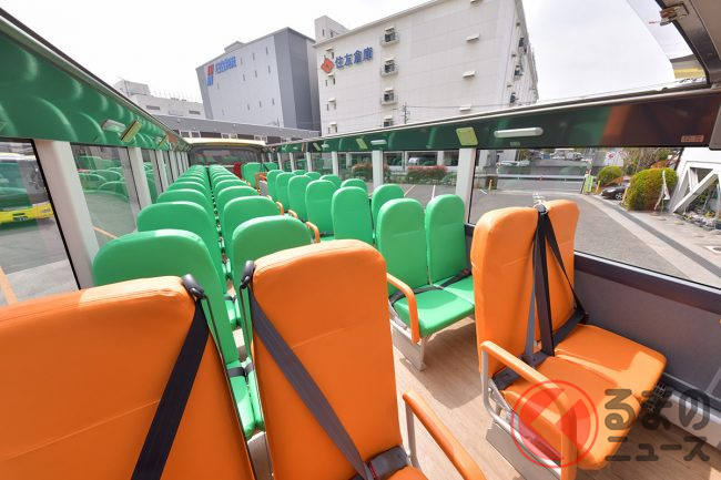 なお、エクリプスジェミニ3では従来の2階建てオープントップバスでは、2階前方にあったガイド席を2階最後列に配置し、フロントの視界を広く確保。景色が良く見えるよう、細やかな部分まで考慮されています。