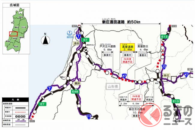 東北中央道~日東道を結ぶ「新庄酒田道路」一部区間で開通時期見直し 現在は工事ストップ