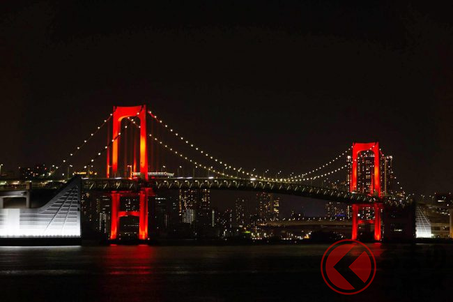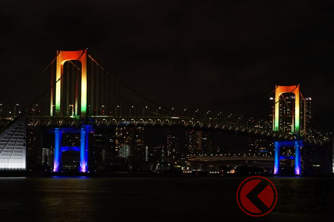 ・2020年6月、東京アラートが出されたことで東京都庁と共に警戒をアピールする目的でレインボーブリッジ全体が真っ赤に。その後、6月11日に東京アラート解除された際には7色のレインボーカラーにライトアップ。