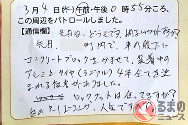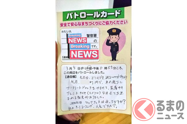 そんななか、あるユーザーが投稿した、警官からのパトロールカードの内容が話題に。どういった内容なのでしょうか。