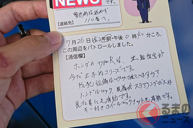 「趣味が滲み出すぎでしょ」 車に突如挟まってた「警官からのメモ」がマニアック過ぎ!? 「めちゃ親切」「ほっこり」の声も