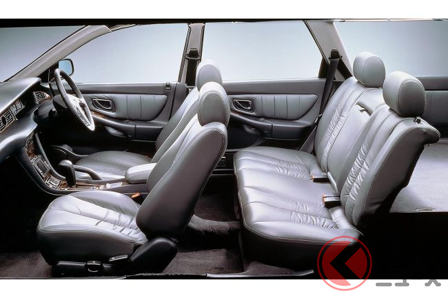 また、内装では専用設計のシートに、セダンの上位モデルと同等の本革巻きステアリングとシフトノブが装着されるなど充実した装備で、ほかにも2:1分割可倒式のリアシートなどユーティリティの高さはステーションワゴンに匹敵しました。