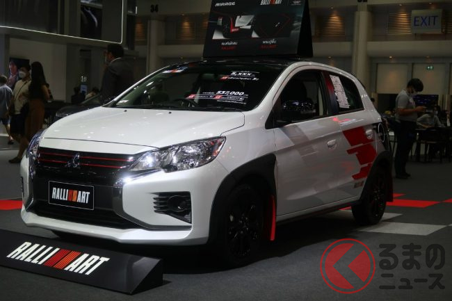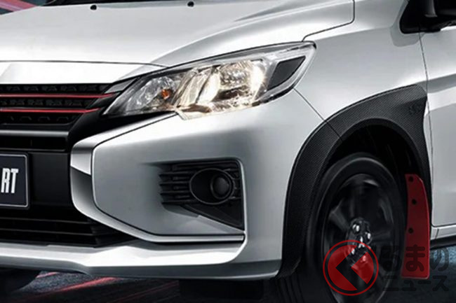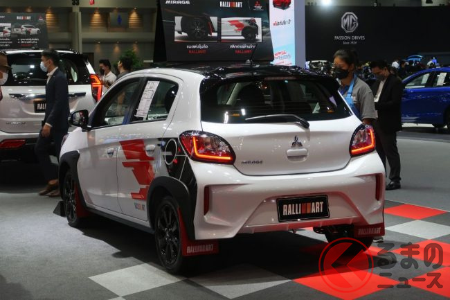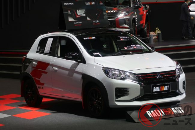 ド派手な姿に驚愕!? 強調オバフェン採用の速そうなコンパクトカーお披露目! イメチェン「ミラージュ」をタイで発表
