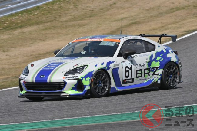 対してSUBARU BRZで戦う「Team SDA Engineering」の「#61 Team SDA Engineering BRZ CNF Concept」(以下BRZ CNFコンセプト)は115周を走り、トータルタイムは5時間2分58秒484、ベストタイムは井口卓人選手の2分24秒157となっています。