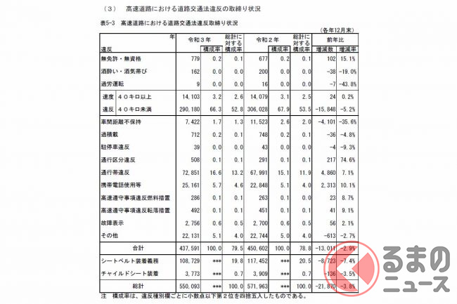2022年3月、警察庁が2021年の交通違反の検挙件数を公表しました。