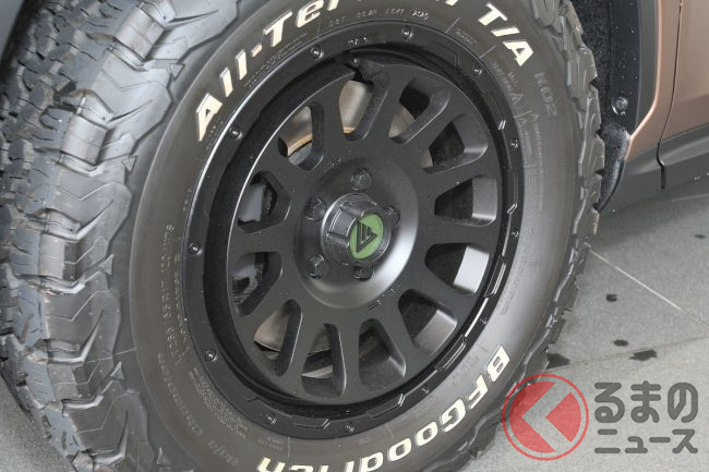 さらに足元には、悪路走破性に優れた大径オールテレーンタイヤ(265/65R17)と17インチアルミホイールの装着することでタフさを表現しています。