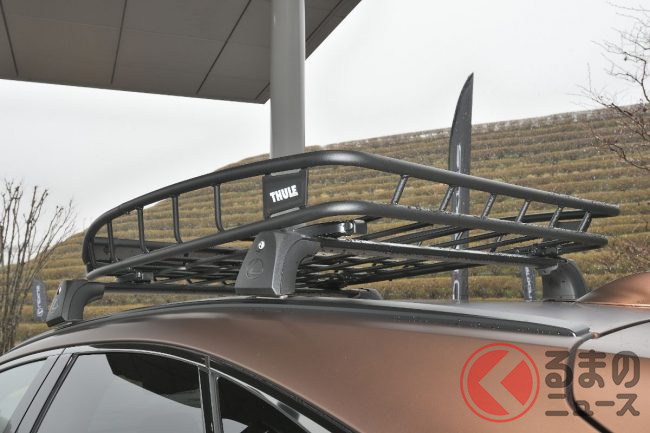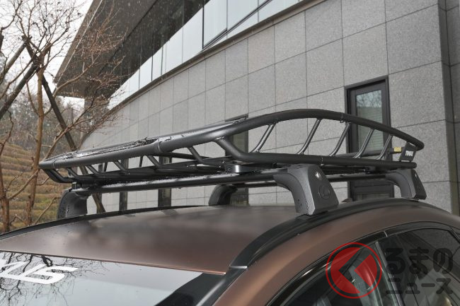 リア部分には「スモーク塗装車名バッジ、LEXUSロゴ」。ルーフ部分にはマットブラック塗装の「ルーフレール」や「キャリアバスケット」を装着することで、アドベンチャーライフスタイルを提案しました。