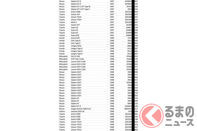 国産旧車、約400台が「破壊」の危機に? GT-Rやスープラが壊される? 米国で「不正輸入」が大問題に! 盗難被害の「車台番号」公開!