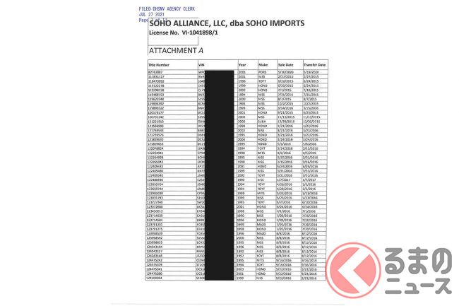レポートに名前が挙がっている400台は、すべて登録が抹消され、タイトルも失効しており米国の道路を合法的に走行できない、保険にも加入できない、などの状態にあります。