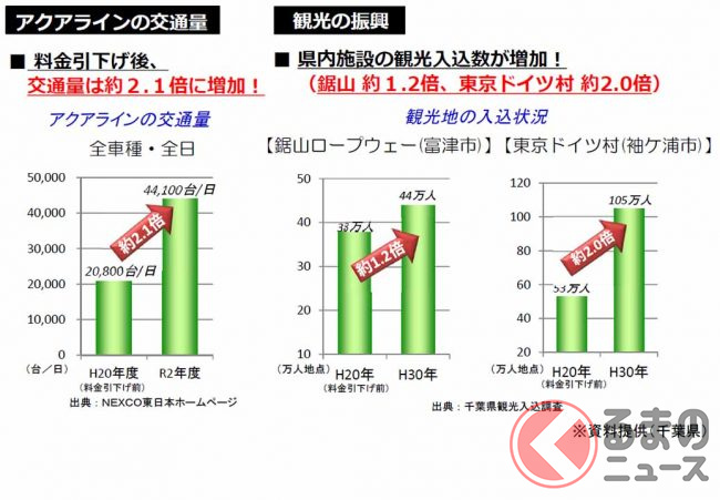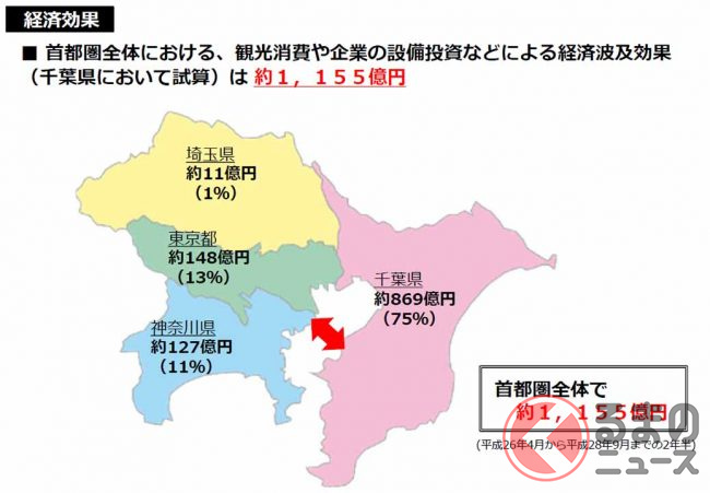 千葉県によると、この割引施策による首都圏全体での経済効果は、2014年4月から2016年9月までの2年半でおよそ1155億円に上るとしています。