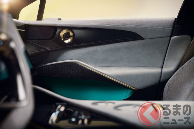 エヴァイアと同様、デザインのキーワードは「多孔性(ポロシティ)」です。これはフロントホイールアーチの前後やリアホイールアーチ後方、Dピラー上部にあるベンチュリートンネルで、走行中クルマの周囲に流れる空気をコントロールします。これは空力学的な理論に基づき空気抵抗を低減し、航続距離の向上など効率的な走行が可能になるといいます。