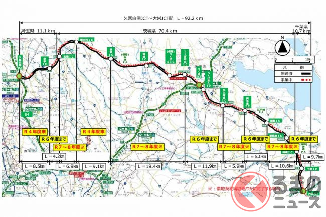 「圏央道4車線化」いつ実現? 渋滞の久喜白岡付近は2022年度中 埼玉~千葉90kmの見通しも明らかに