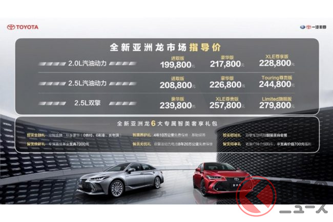 トヨタの中国の合弁企業「一汽トヨタ」が新型「アバロン」を3月30日に発売しました。